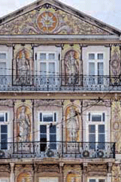 Concentrando-se principalmente as unidades fabris no Porto e Lisboa, definiram-se duas sensibilidades. No norte é característico o recurso a relevos pronunciados, num gosto pelo volume e pelo contraste de luz e sombra; no sul mantêm-se as padronagens lisas de memória antiga, transpondo-as dos espaços interiores, para uma quase ostensiva aplicação exterior nas fachadas." in website - Instituto Camões