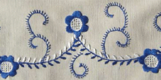 (...) É a este último que se chama Bordado de Viana do Castelo, que uma importante exposição realizada naquela cidade em 1917 deu a conhecer de forma impressiva, aí se tendo consolidado uma produção, mais profissionalizada, que ainda hoje se mantém. Este bordado, muito conhecido, a que a oficina de Isilda Parente, veio trazer uma acentuada e benvinda requalificação, vive ainda, como sempre, da expressividade das suas "japoneiras", camélias estilizadas com os centros em "crivo", "silvas" e corações. Este bordado, originalmente em fio de linho sobre tecido de linho, com a banalização do fio de algodão, utilizado quer no tecido, quer no bordado, rapidamente começou a ser feito em cor e desde há muito que este típico "bordado a branco" se faz banajmente em azul ou vermelho ou mesmo nas duas cores em simultâneo! Se o branco ou o cru, o vermelho ou o azul, de há muito são utilizados assiste-se muito recentemente, à produção de obras em que o desenho aparece muito mais estilizado e cuidado, bordado em cores que claramente acompanham a mais recente moda do têxtil-Iar." Ana Pires " Bordar em Portugal "
