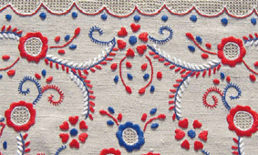 por todo o Alto Minho. O bordado a lã, muito utilizado no traje tradicional, será o de origem mais antiga, convivendo com os outros tipos de bordado mais recentemente incorporados no têxtil decorativo